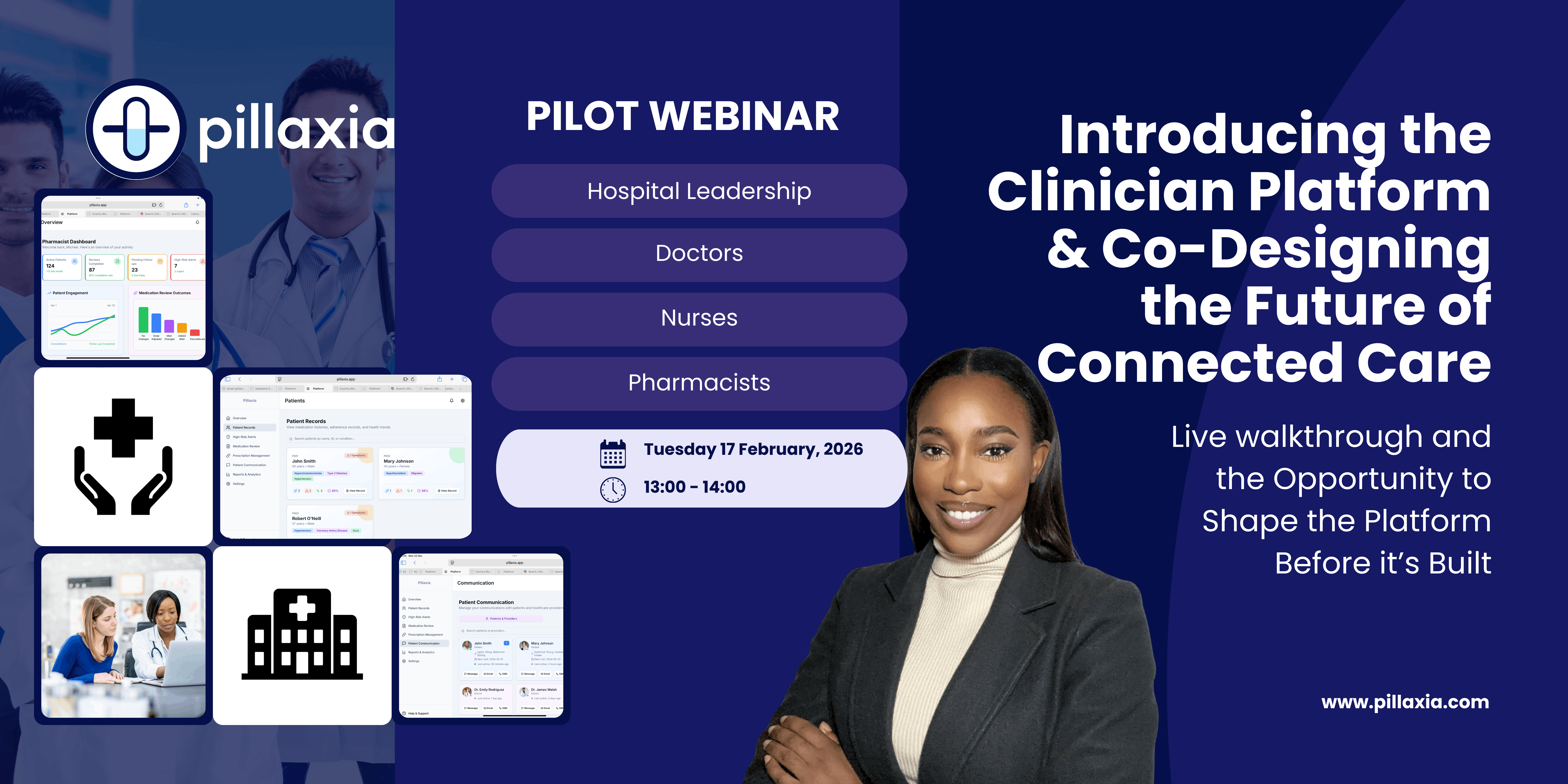 WebinarOpenJoin an exclusive pilot webinar with Enugu State hospitals to explore PillaxiaRx — a clinician web platform for medication oversight, follow-ups, and patient adherence.